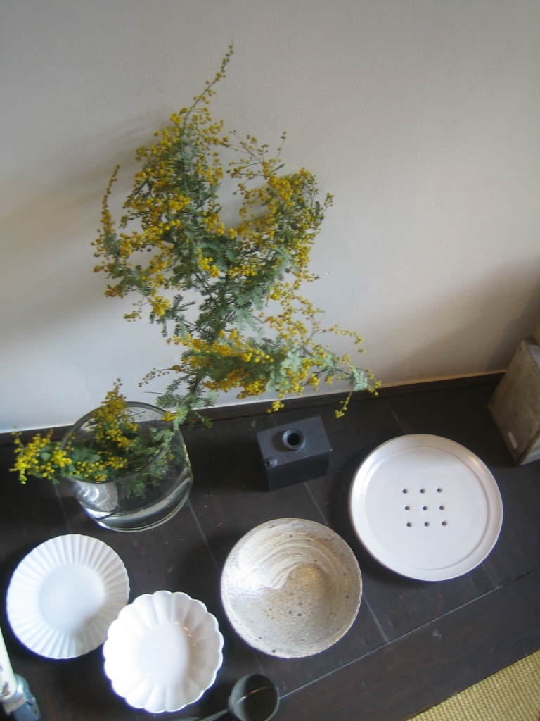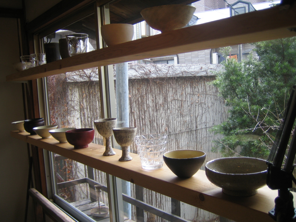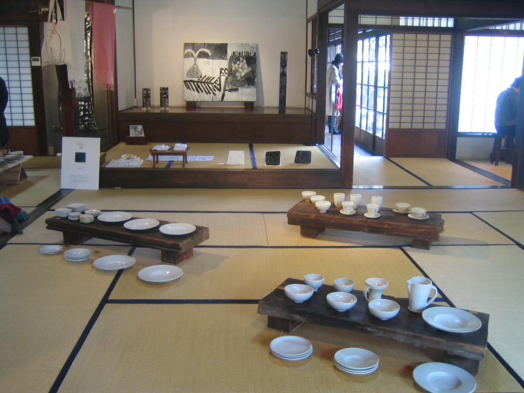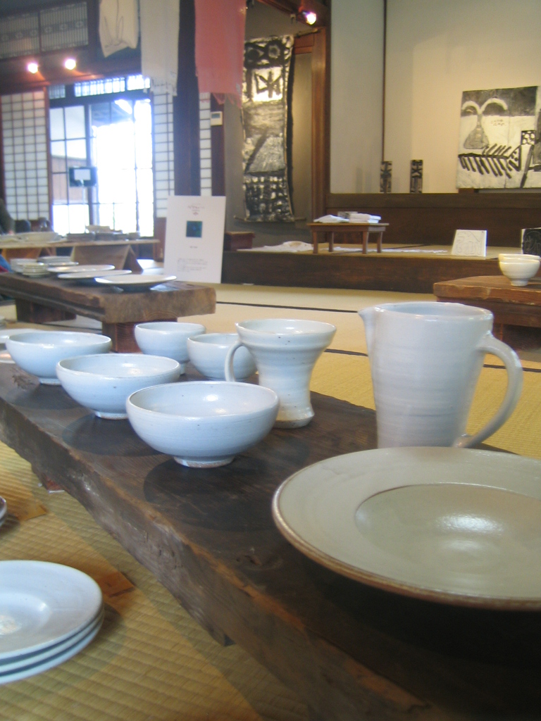 ちいさな(3~4.5畳?)和のギャラリーに、いろんな作家さんたちの陶器がころころんと。