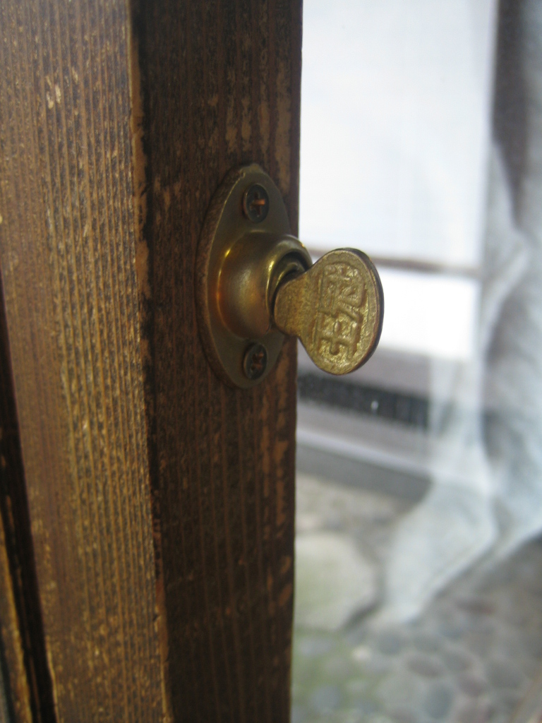 写真右は鍵。田舎のばあちゃん家にあるような、真ちゅう製のねじ込み式の鍵。これまた粋です!