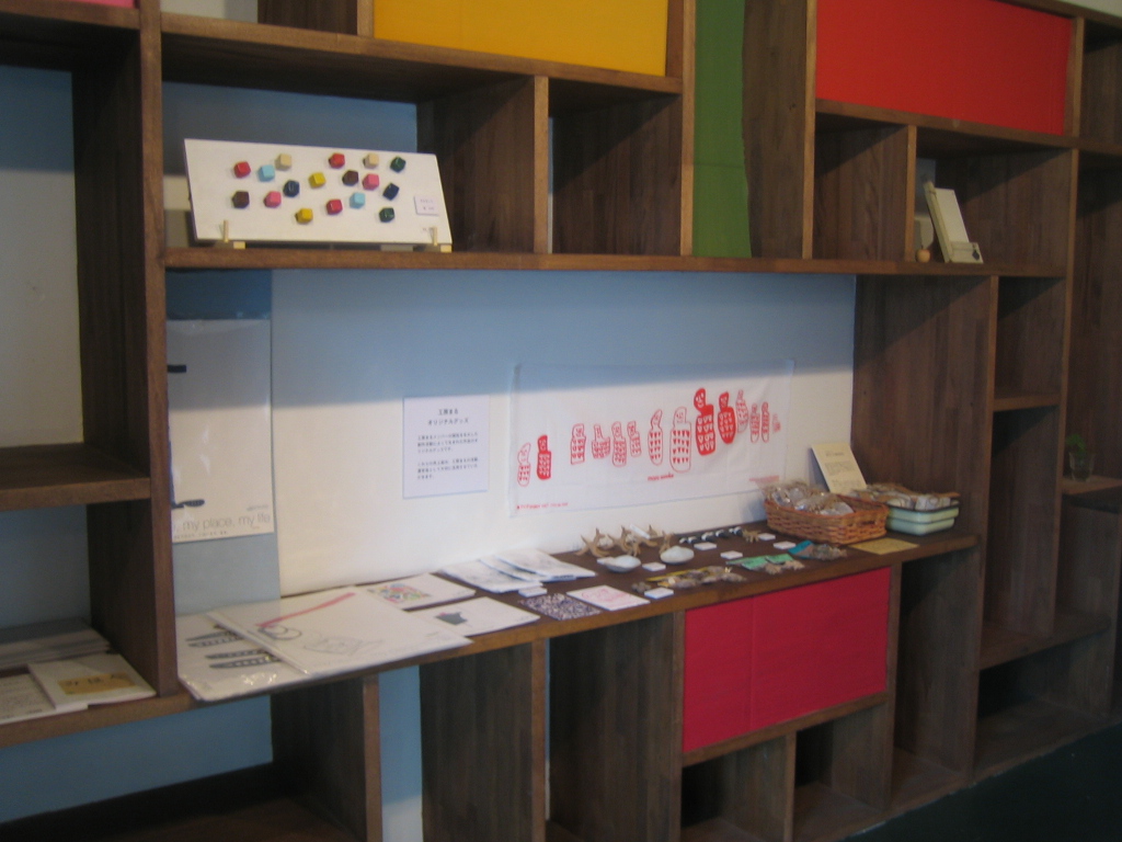 店内のテーマが公園ってこともありカウンターのテーブル(写真左)は、おそらくシーソーじゃなかろうか・・・と。店内では個展やイベントも催されてるようで、入り口横の壁面(写真右)には、さまざまなジャンルの作品やフライヤーなんかがおかれてました。