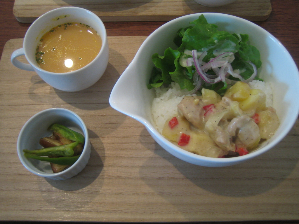 わたしは、五穀米と大豆のから揚げと日替わりの小鉢・スープのついた「五穀玄米ランチ」¥750(写真左)、友人は日替わりのどんぶりランチ「dafeボウル」¥650(写真左)を食しました。