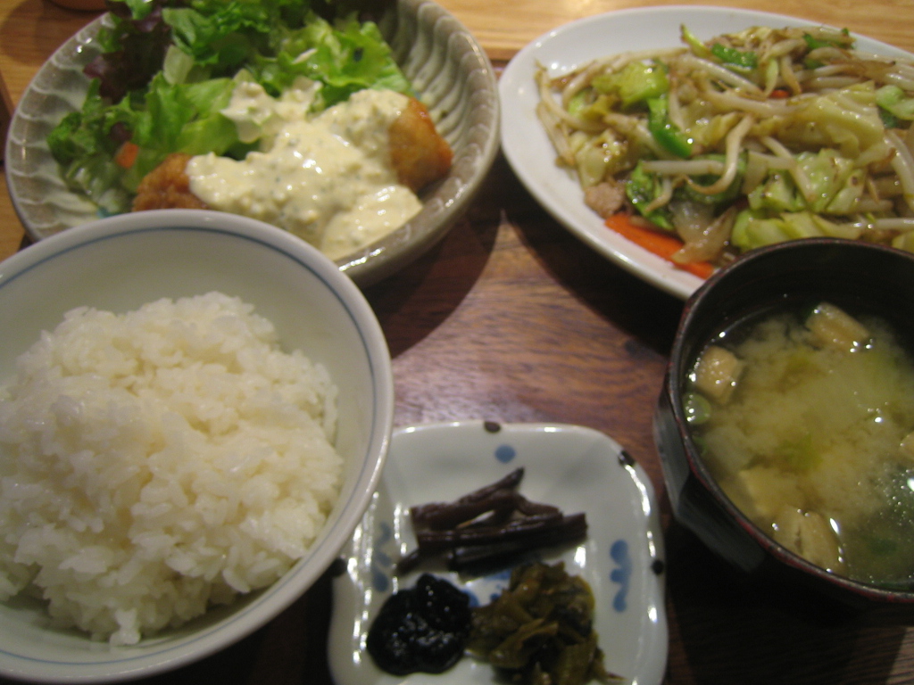 私たちが食したのは、ごはん・味噌汁(orスープ)・小皿(お漬物)がついている「えらべるランチ」