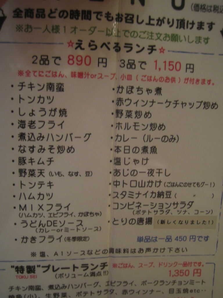 ←ちなみにこちらがおかずメニュー お腹すいてたらメイン2種(とんかつ+南蛮とか)