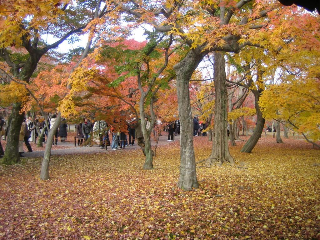 左)2000本のカエデが植わってるそうです 中)散りはじめの時期は散り敷いた落ち葉も楽しめます→かなりいいタイミング!!